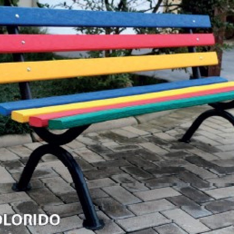 Descrição: O Banco de Aço para Jardins P-92-A da Krenke é um banco composto por pés com uma estrutura de tubo de metal galvanizado com ripas de madeira plástica COLORIDA.